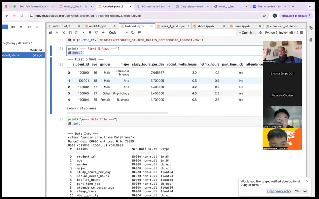 Mr. Anith Ghalley has organized more than one an half hour sessions to familiazrize us with the data visualizations, code help from Chatgpt etc.