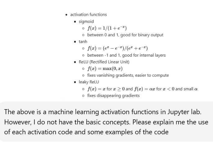 I used Chatgpt to understand the machine learning functions in details. The following are the prompt used for learning.