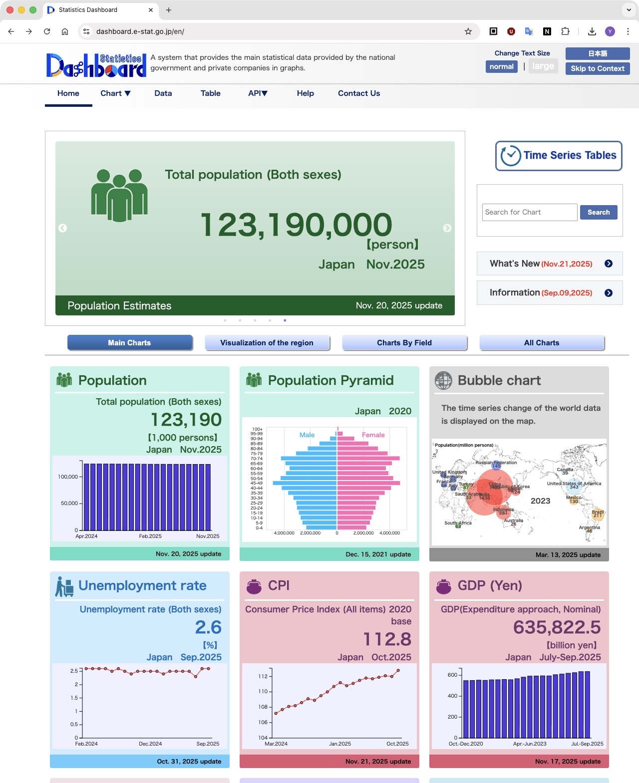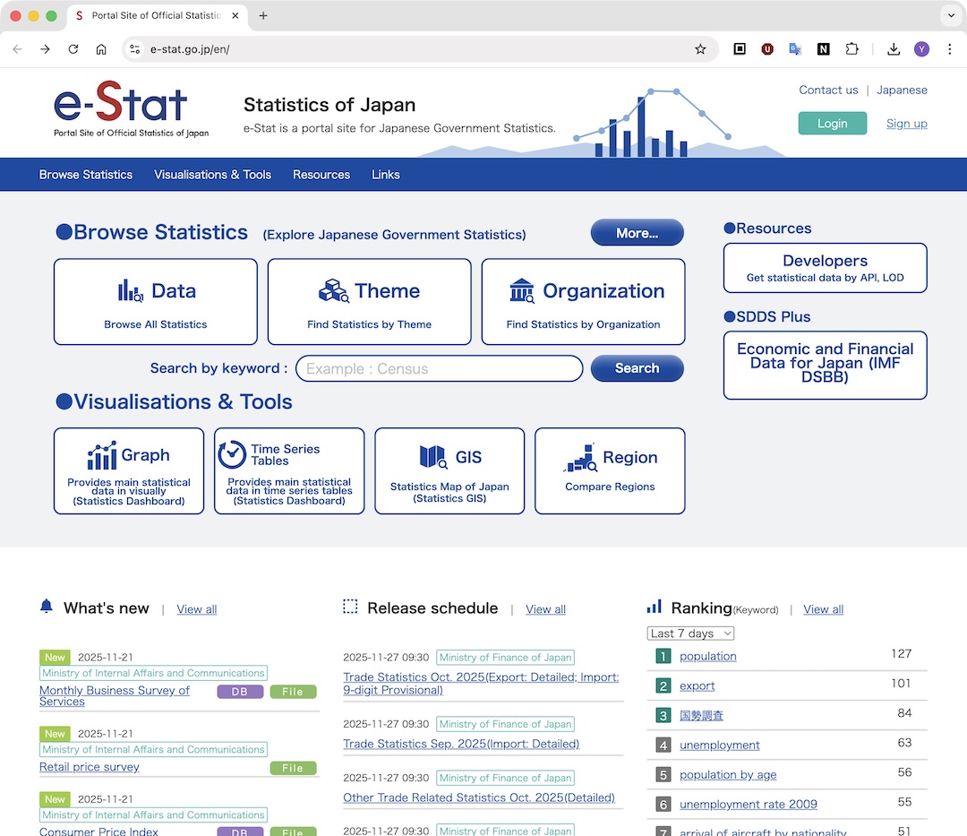 e-Stat has a dashboard.