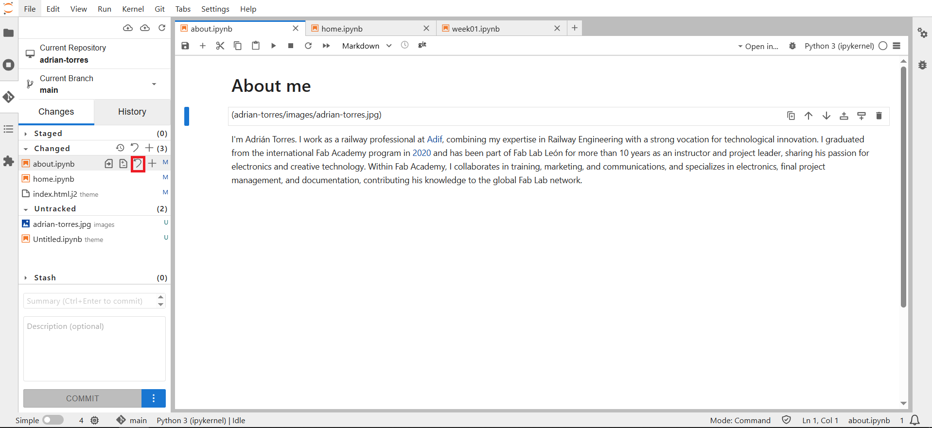 Once it was up and running, I modified my Bio a bit and had to remember how to use Markdown commands. More to come tomorrow.