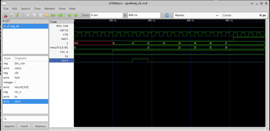 The one-cycle offset in the simulation results was another valuable lesson. It revealed that synchronous hardware has a fundamentally different timing model than software: an assignment in an always @(posedge clk) block does not take effect until the next clock edge, not immediately. This distinction is critical to getting correct simulation results and understanding real chip behavior.