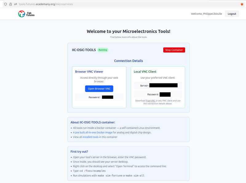 Something is bugging me … The IIC-OSIC-TOOLS cloud-hosted image is great but is very volatile. It could restart for good reasons and I would loose my work. I know /foss/design is persisted but it is still fragile and I will loose it anyway once the course is over.