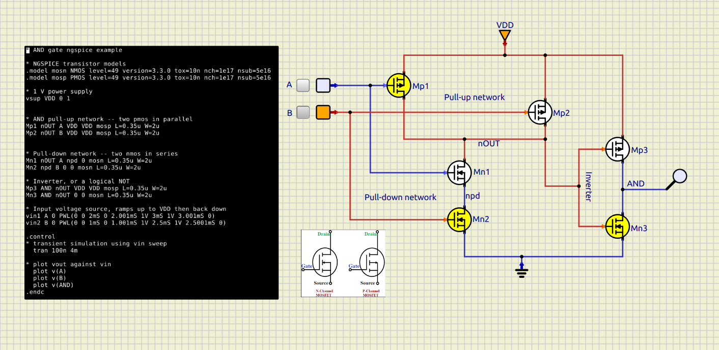 Here is the original AND gate, in SimulIDE