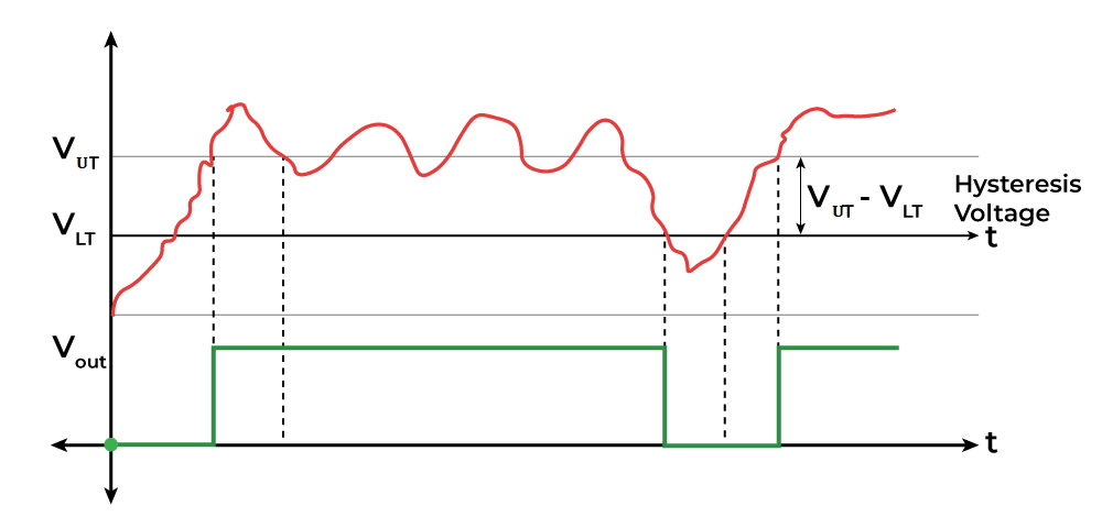 Let’s bounce for a while but never bellow the bottom threshold. Output remains HIGH