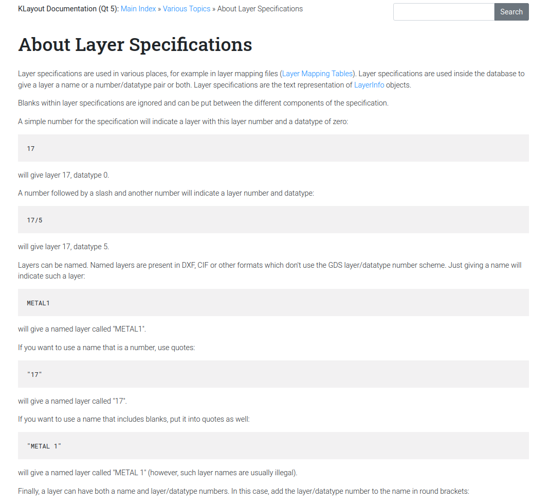 The list of layers is displayed on the top-right side. We can hide empty layers from the list using contextual menu. Layers are desribed in the PDK reference