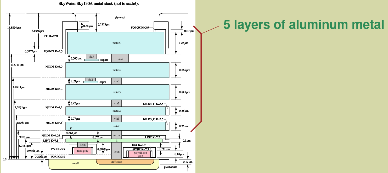 - Diffusion layer (the active area for transistors) is layer 65
