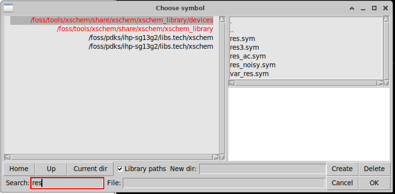 In xscheme, there are device symbols in the folder “/foss/tools/xschem/share/xschem/xschem_library/devices”.