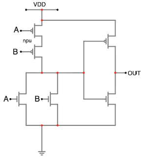 (Hint: Swap the series/parallel arrangement of transistors) falstad