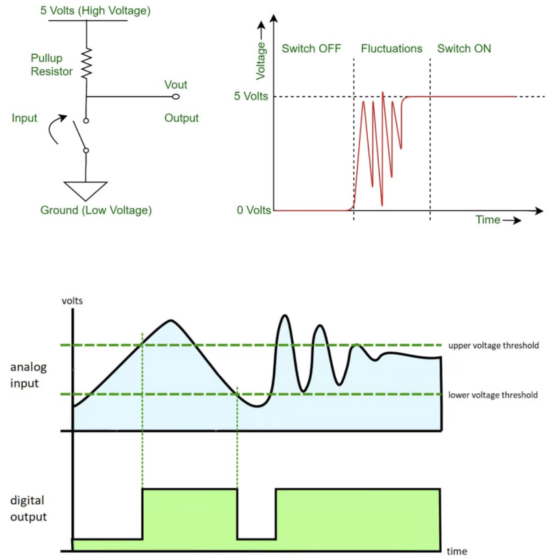 Real-world signals aren’t perfect. A button press or sensor might produce (Bouncing)