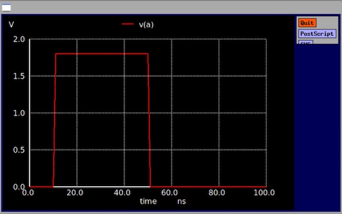 Va a gnd PWL(0n 0 10n 0 11n 1.8 50n 1.8 51n 0 100n 0)