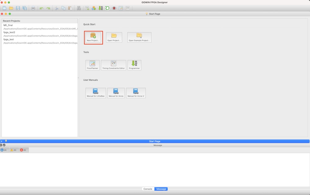 First, I downloaded GoWin IDE for designing and programming on this FPGA board.