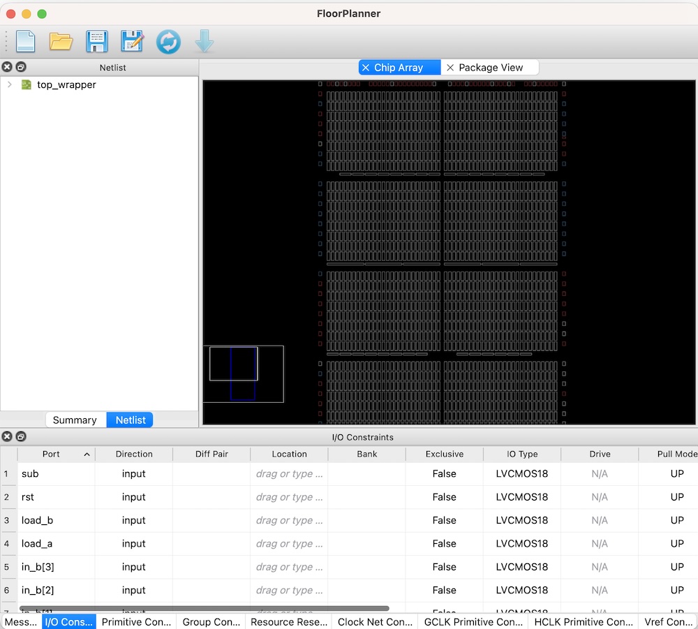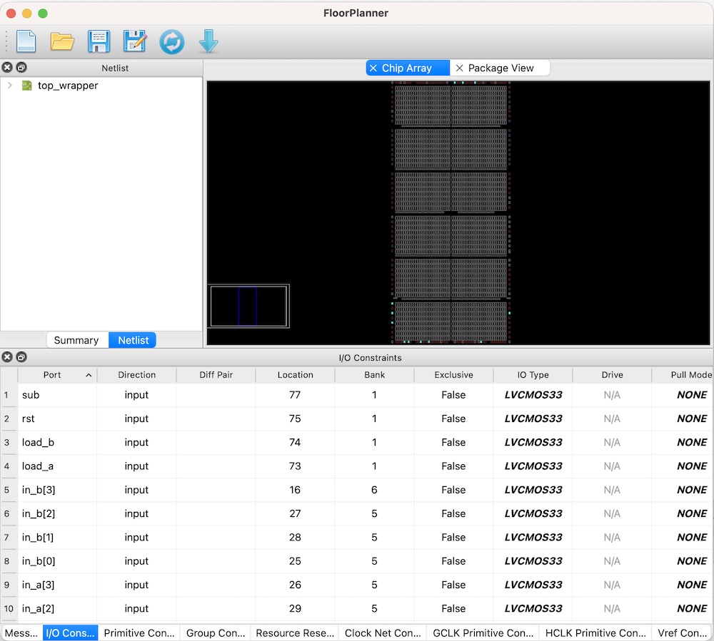 Floor Planner is to connect input/output of my chip design (by Verilog) to the FPGA board’s pinout.
