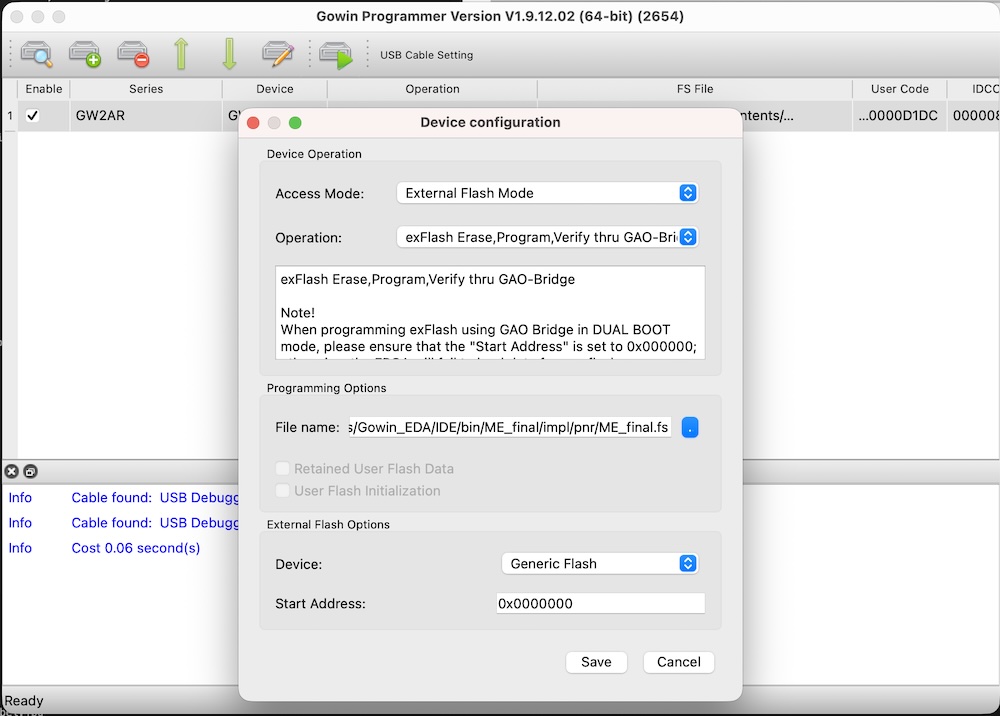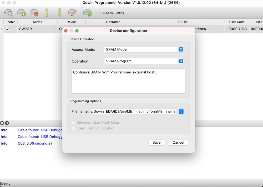 Then, the SRAM file is downloaded and saved into local PC file. Because I use macos, I need to use external programmer (openloader), I did this operation.
