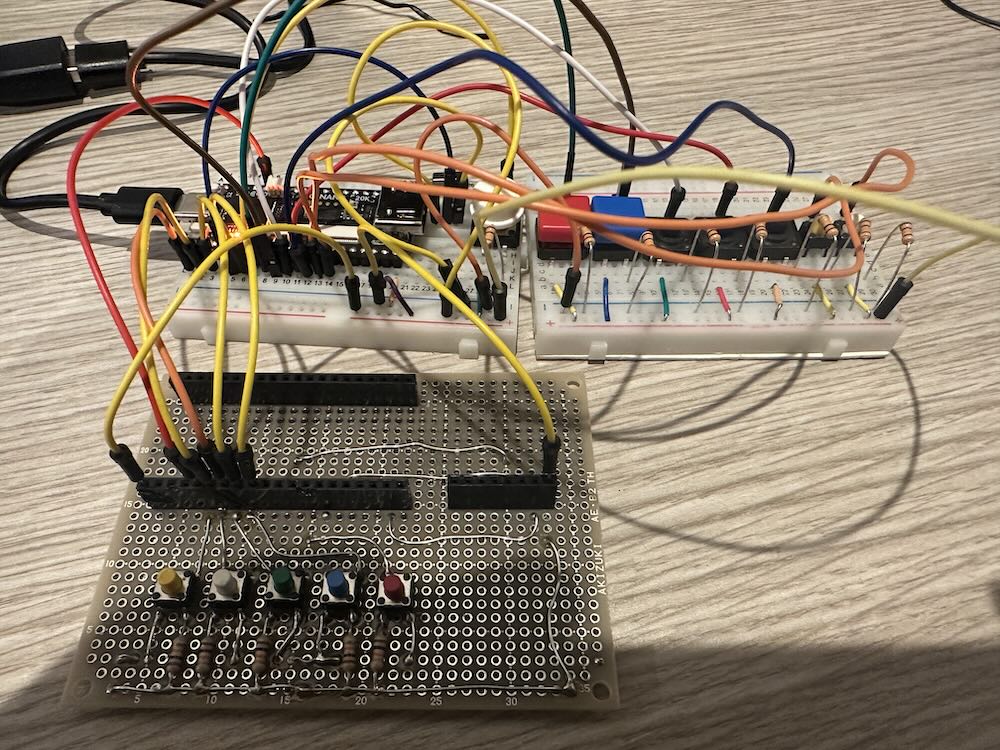 Then, I used breadboard and tact switches and one slide switched. Here is the wiring of switches to all input pins.